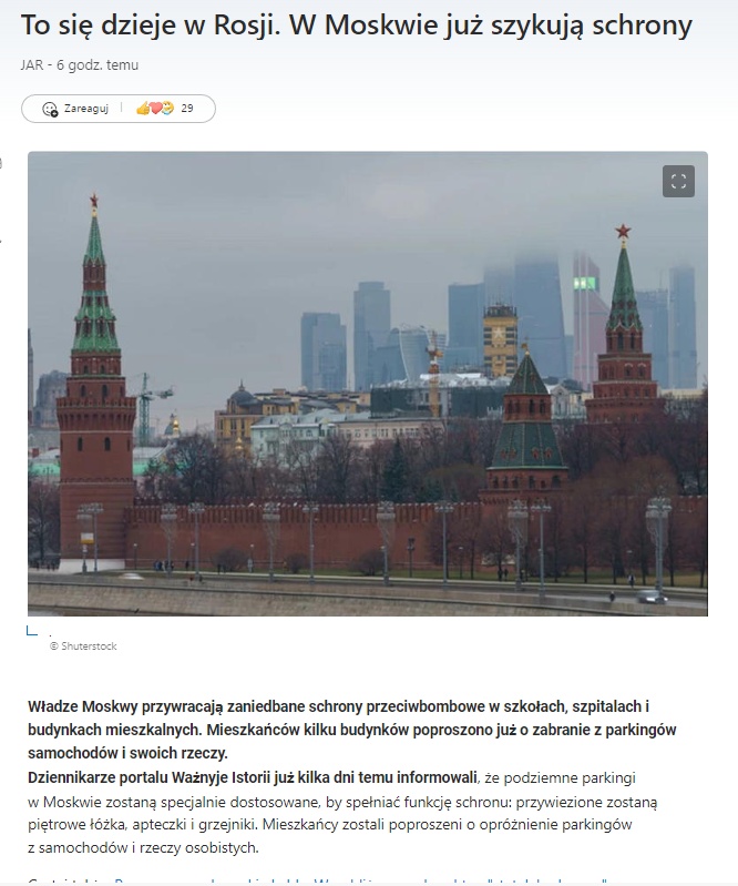 W Moskwie już szykują schrony - niezły show i ktoś się ma na to nabrać?