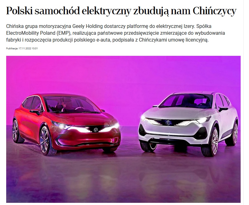 Polski samochód elektryczny zbudują nam Chińczycy