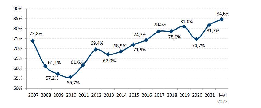 Pokrycie emerytur że składek ZUS wzrosło z 68,5% do 84,6%