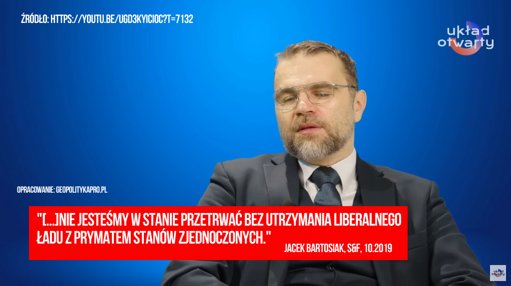"[...]Nie jesteśmy w stanie przetrwać bez utrzymania liberalnego ładu z prymatem Stanów Zjednoczonych." Jacek Bartosiak, 10.2019